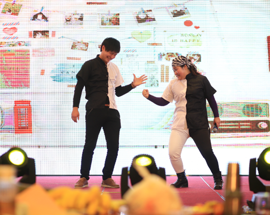 刚说到康少全能,殊不知苏州君通的小伙伴们也是个个能歌善舞、连小品也是创意非凡引起沸腾,很花心思去创作的《包子战群雄》小品献给大家: |
