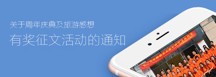 10月21日是公司十五,在举行典的同时,本月24、25日两天公司又组织了无锡阳山度假旅游。此次,公司非常重视,为了体现每位员工在君通提供的这个平台上的自我价值,我们做了很多的准备工作,也得到很多的反馈。在度假旅游过程中为了丰富娱乐内容,提高员工的集体荣誉感,公司还组织了拔河比赛、自行车比赛、两人三足比赛的竞技项目和其他休闲项目,全体员工的参与度很高!现以典的举行情况和度假旅游的活动组织情况为内容,以每位员工的个人感想为主题,为了提高全体员工的集体幸福感、成感,实现“快乐工作、幸福生活”的目标,公司现决定开展有奖征文活动。望全体员工积极参与,踊跃投稿!大奖在等着你哦!投稿截止时间为27日下午下班之前!