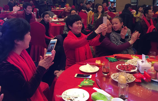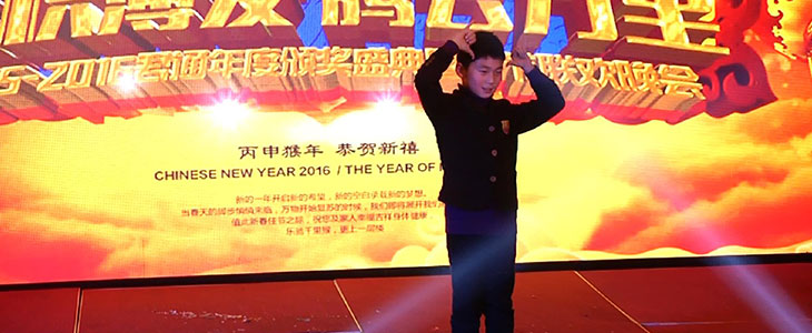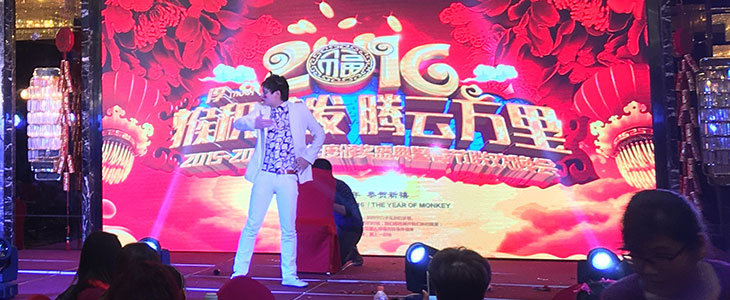 下面首先有请我们君通的大家长尹总来给2016年度君通杯春晚致开幕词,本届君通杯春晚尹总邀请了她的姐姐姐夫、她的老同学老领导等嘉宾莅临本次春晚,尹总作为东道主首先隆重地介绍了他们的到来: