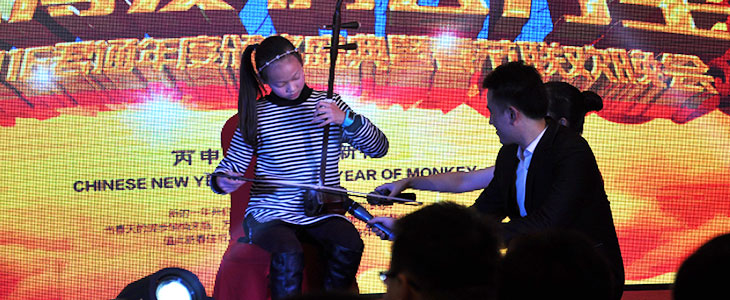 一场视觉盛宴欣赏完接下来登场的是我们市场部王经理的外孙女陆薏莲为大家带来的二胡独奏《喜洋洋》,参加过君通2014年度春晚的都对这个小美女印象深刻,对,她是那个和乔博pk到后赢得胜利的女汉子陆薏莲,也是我们君通春晚上的一个“君通下下一代”哦,在这里我要说:“我们君通人肯定会一代更比一代强”!她给我们带来的是一支欢快俏皮的二胡《喜洋洋》独奏,让大家开心不已、尤其是小朋友都好奇姐姐怎么那么有才华?确实她不仅人长得漂亮、还那么博学能干,现如今了解并去学习我们中国传统乐器的很少很少,而陆薏莲做到了,晚会上也获得了表演奖: