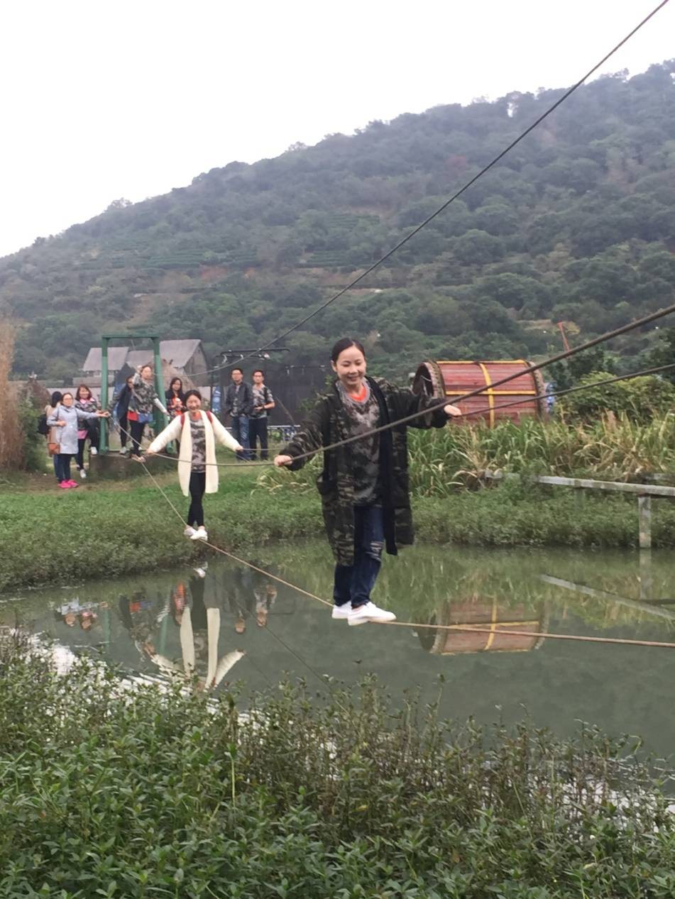 Cs结束之后我们先是个人活动了一会,小伙伴们互相拍照留影,我们又跑到水上钢丝来了个水上漂,惊险又刺激,尤其是两人相互走过来交会的时候,当走到中间时鞋已经粘到水面了,受力没有控制好,两个人都偏向了一侧,那时候感觉整个人已经躺在水面上了,心里什么想法都没,只是告诉自己无论如何不能松开手里的绳子,否则两个人肯定都掉水里去了,后来不知道怎么回到中间去了,除了我们自身平衡了一些,也是身后的伙伴们帮忙拽了绳子,那时候再往后半段走,已经一点紧张的情绪都没有了,感觉心理素质得到了升华,也是因为互彼此的信任和依赖才使得我们顺利过关。
