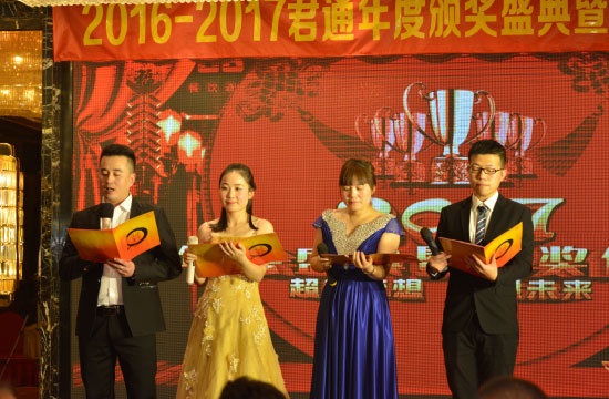 后进入我们的晚宴以及对2016年销售冠亚季军、销售递增以及员工的颁奖,大家开心的吃着喝着唱着,开心的热闹着,无锡君通软件有限公司2016年年会圆满结束,我们共同期待我们的2017,手牵手,肩并肩我们一起前行!加油君通,加油伙伴们!!