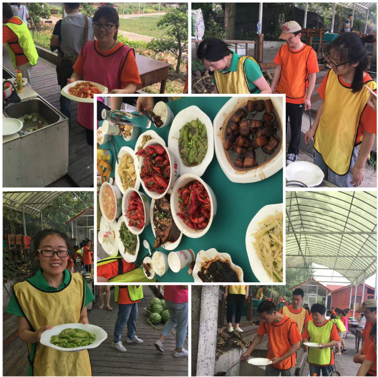 这边我们客服的莲莲和宋经理给大家上菜了,令我们垂涎三尺的美食尽在眼前,瞧,电销部个准备绪要开动啦:
