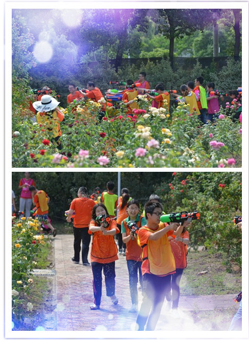 吃饱喝足之后,还有更好玩的在等待着大家哦。尹总作为我们的首席指挥官,带领大伙一起在花海中开始水枪大战,在花园中展开了一场脑力与体力并存的精彩角逐;有我们的到来令整个山庄沸腾起来。有人认真享受活动的乐趣,也有人专门为她们拍下精彩瞬间,例如我、海燕和王经理是专门的摄影师,为大家留下美好回忆。