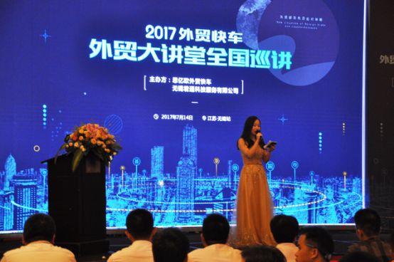 2017.7.14下午,烈日当空,炎炎夏日,无锡滨湖万达喜来登3楼400多位慕名而来的外贸企业从业者、外贸高端精英人才因外贸结缘,汇聚一堂,都为了如何开启外贸之路,接下来如何更好地做好外贸? 为帮助无锡中小企业由“内销—外销”的成功转型升级,无锡君通联合杭州思亿欧组建了专门的外贸网络营销理论和实践专家团队,推出了纯公益性质的无锡杯“jac外贸大讲堂”,旨在为广大外贸企业带来新的外贸营销理念和实践知识,也针对外贸实操过程中的普遍问题提供解决方案,给广大外贸企业带来福音。本次会议由外贸快车无锡服务中心——无锡君通软件有限公司承办,活动一经确认举办,吸引了众多外贸企业家和外贸实操人员的踊跃报名,据统计,网上报名人数近达500余人,可见无锡的中小企业有无穷大的提升潜力与进步空间!