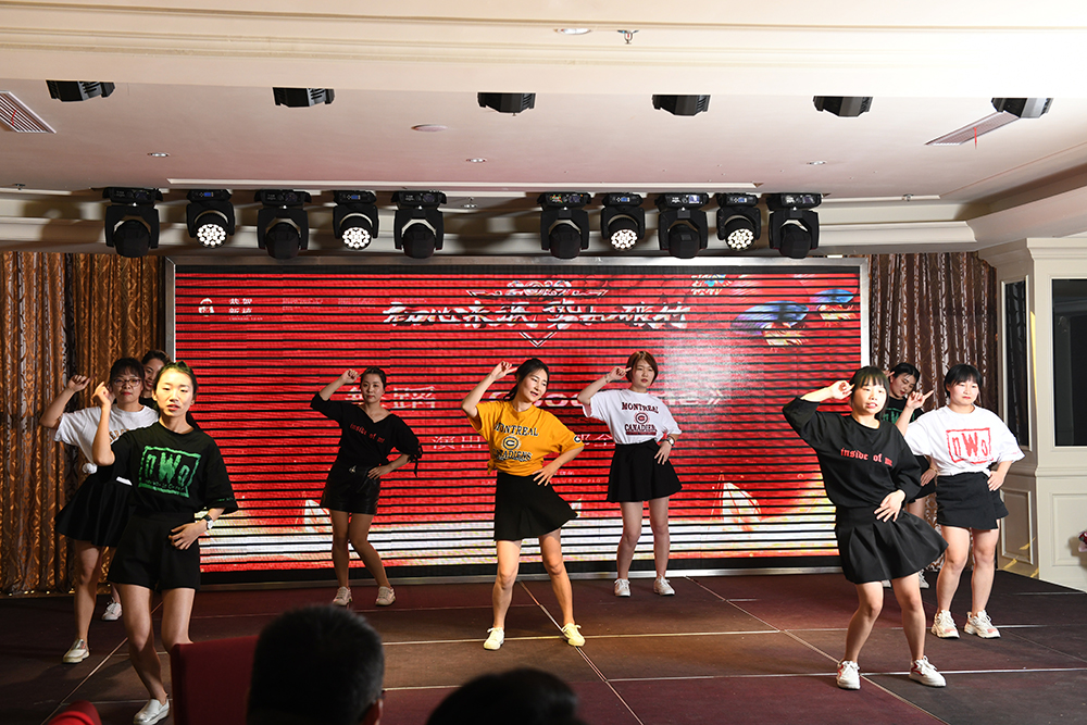 也正是因为如此,我想,能和市场部舞蹈一较高下的,是客服部门小姐姐带来的舞蹈《Good time》,时尚动感的音乐一起,整个会场的目光都被吸引了。