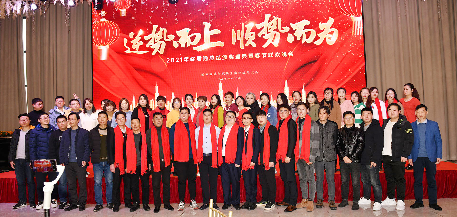 春花露笑意,爆竹添欢笑,气势恢宏的电子屏”逆势而上,顺势而为”拉开了无锡君通科技有限公司2021年度总结表彰及2022年度规划大会帷幕!回首牛年,对于我们来说给予我们太多的难忘和感动,让我们难以忘怀,过往皆序章,未来皆可盼,君通这艘互联网的诺亚方舟领航者康总及各部门职责人分别对各部门过去一年的工作都做了详细的总结和新一年的规划!